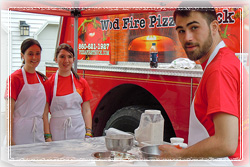 Our Red Fire Truck has it's own power so it can serve hot pizzas anywhere in-and around-Connecticut!