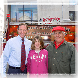 Welcome! I'm Sal Ajro. Friends call me the “Chief of Pizza Fire Trucks” in Connecticut. That's me- with my daughter Amber and Senator Richard Blumenthal-on your left.  We recently delivered pizza in our fire truck to the frontlines of New York City      (Spectrum News NY1, May 2020)